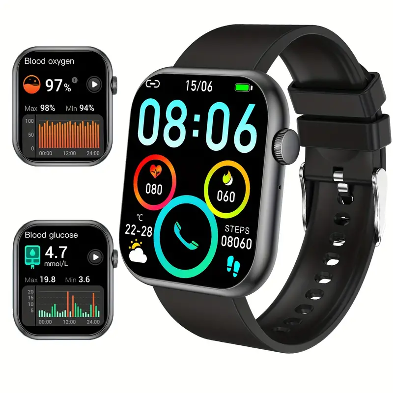 4) Blood Sugar Monitor Smart Watch, Blood Glucose Heart Rate Blood Oxygen Blood Pressure Fitness Tracker Watches, For Men Women With IP67 Waterproof- 2.0″ Wireless Call Sports Smartwatch, no need to worry if it gets wet.