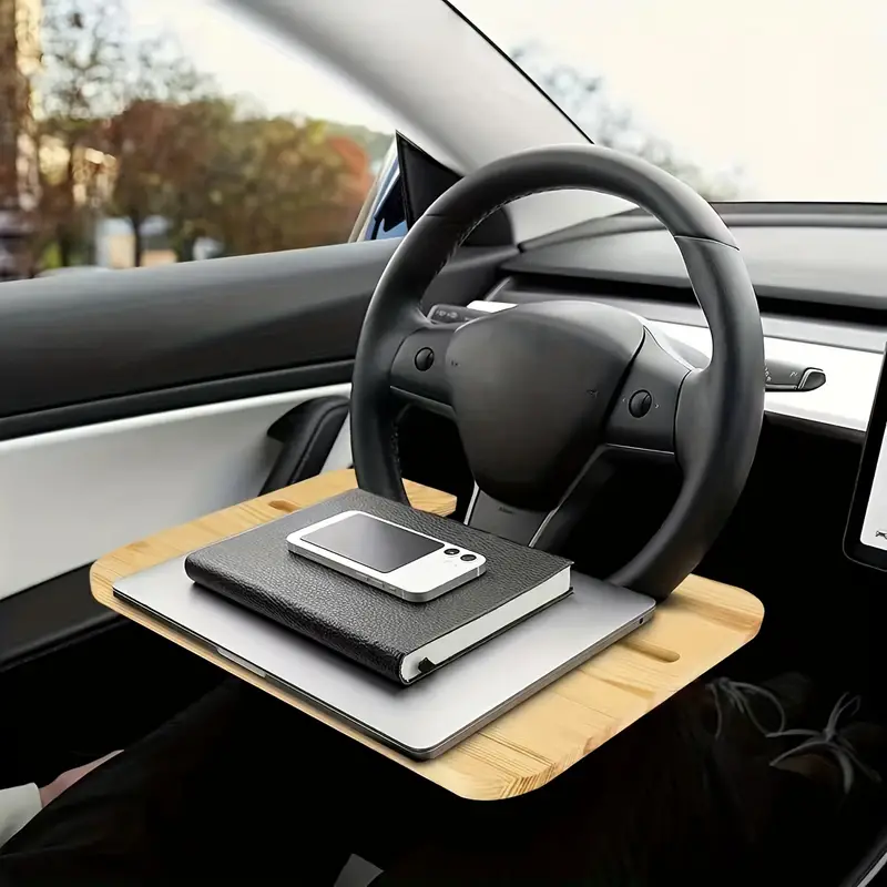 16) This Pine Wood Double-sided Steering Wheel Tray, Can Be Used To Place Burgers, Sandwiches, Water Cups, And Can Also Be Used For Office Leisure Entertainment Solve The Inconvenience Caused By Eating In The Car, truck, camper Office Leisure And Entertainment